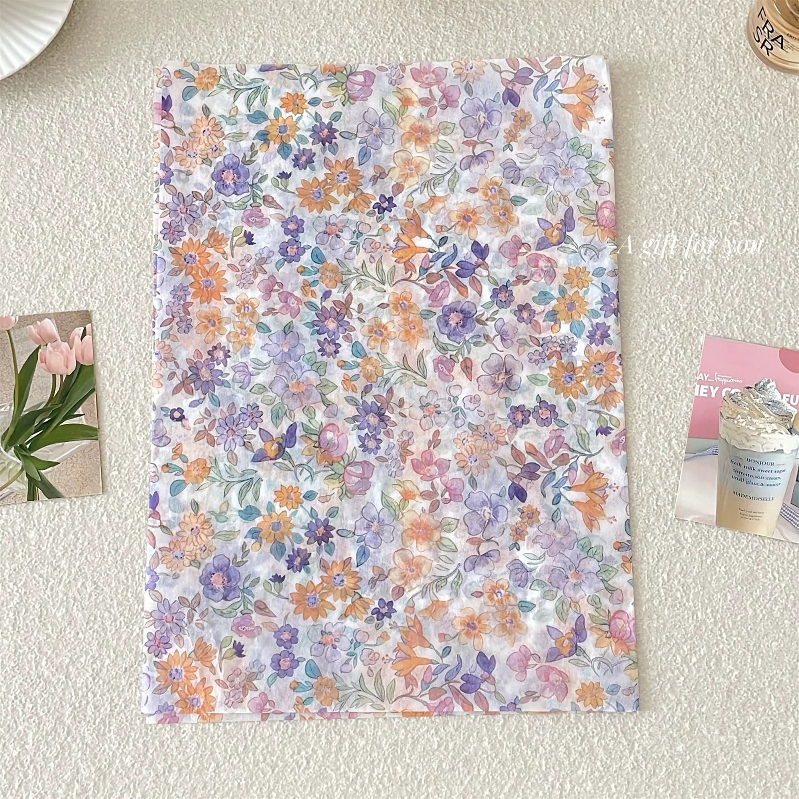 ¡Haz que cada regalo sea aún más especial con este hermoso set de papel de regalo con diseño de flores!