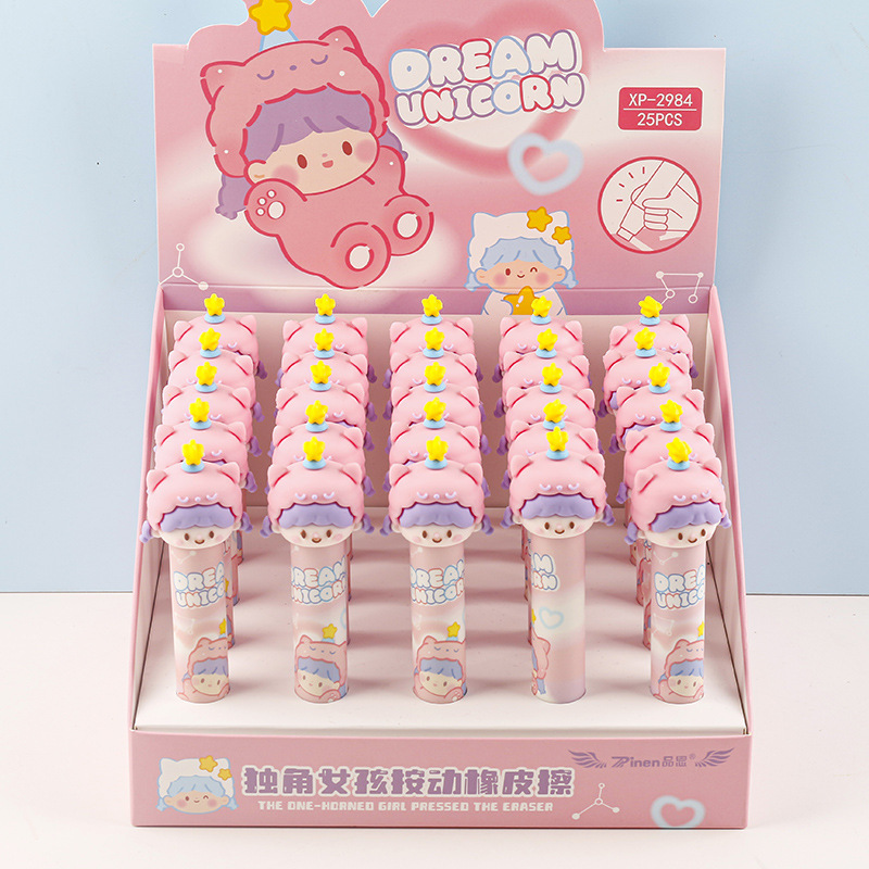 Haz de tus correcciones un momento adorable con esta goma con forma de muñeca. Un accesorio único que combina utilidad y ternura en tu estuche.