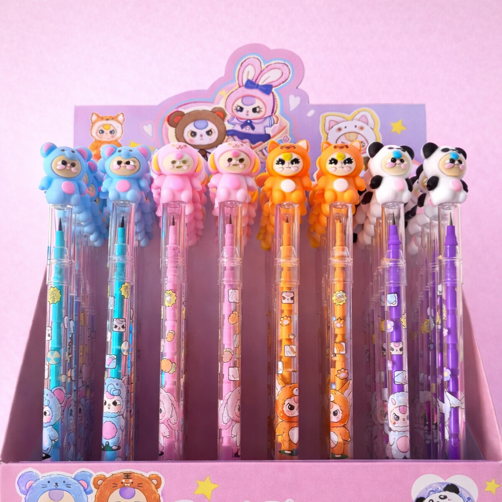 Haz que tus momentos de escritura o dibujo sean más entretenidos con los adorables lápices de mina montable Baby Three. ¡Colores vibrantes y diseños tiernos que alegran cualquier estuche escolar!