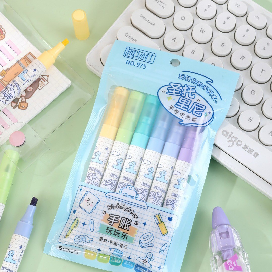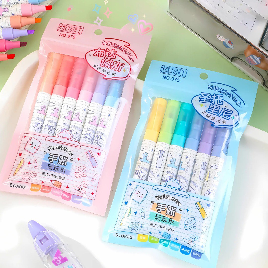 Ilumina tus notas y tareas con estos destacadores fluorescentes, disponibles en 6 colores surtidos por set.