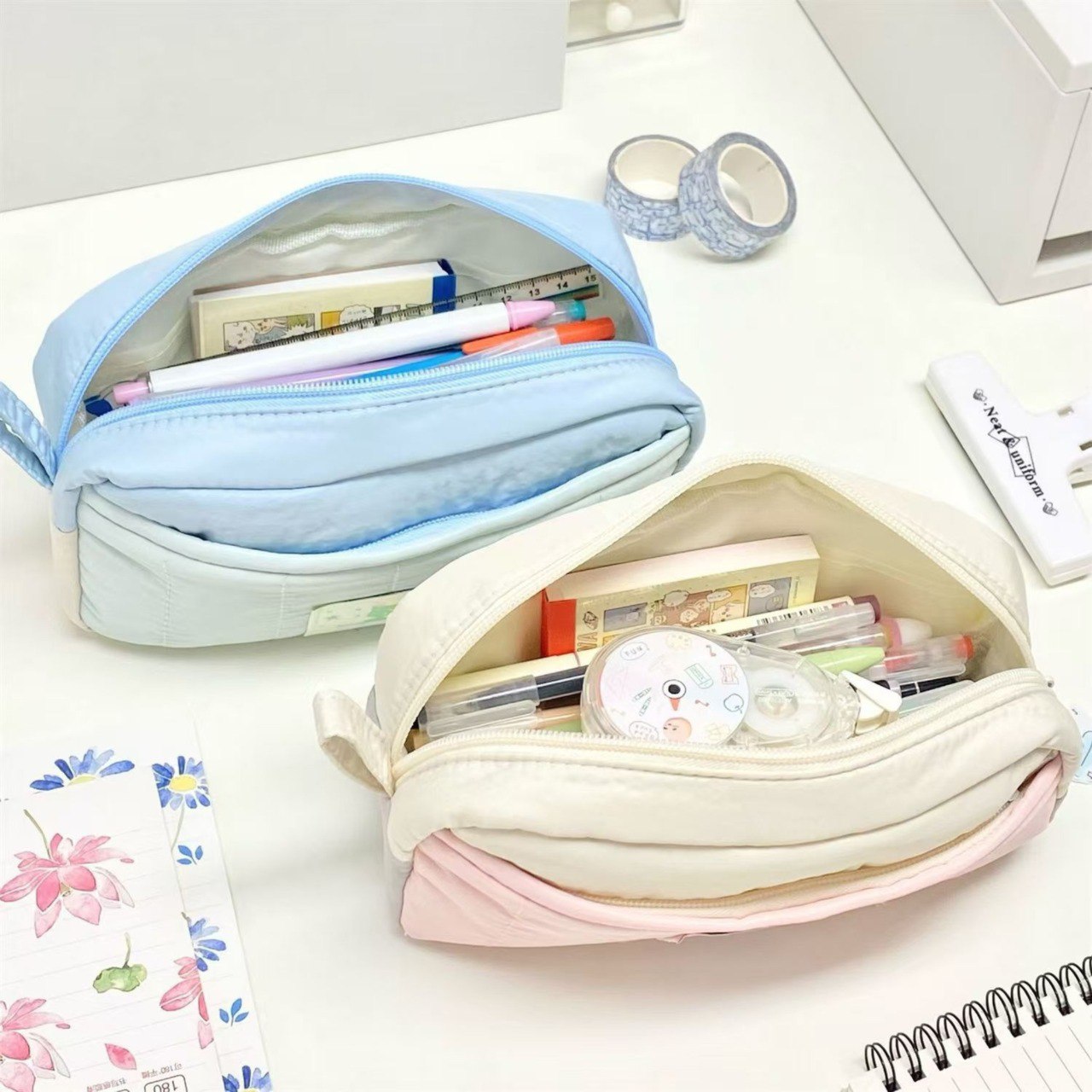 Fabricado en poliéster resistente, es ligero, duradero y fácil de transportar en mochilas o bolsos. Gracias a sus dos compartimientos, permite separar y ordenar mejor los útiles.