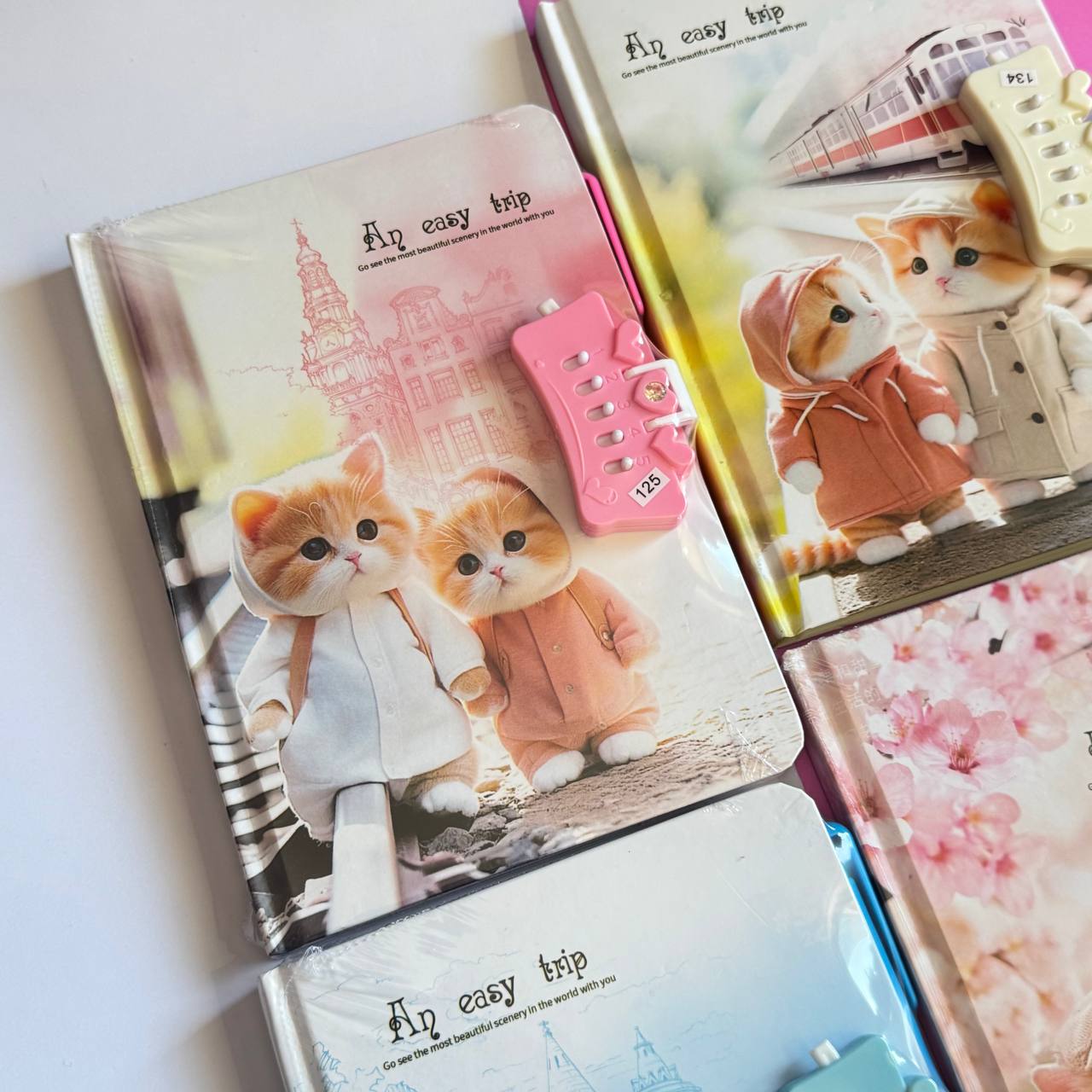 Protege tus secretos con esta hermosa libreta con contraseña numérica y portada de gatitos enamorados estilo kawaii.