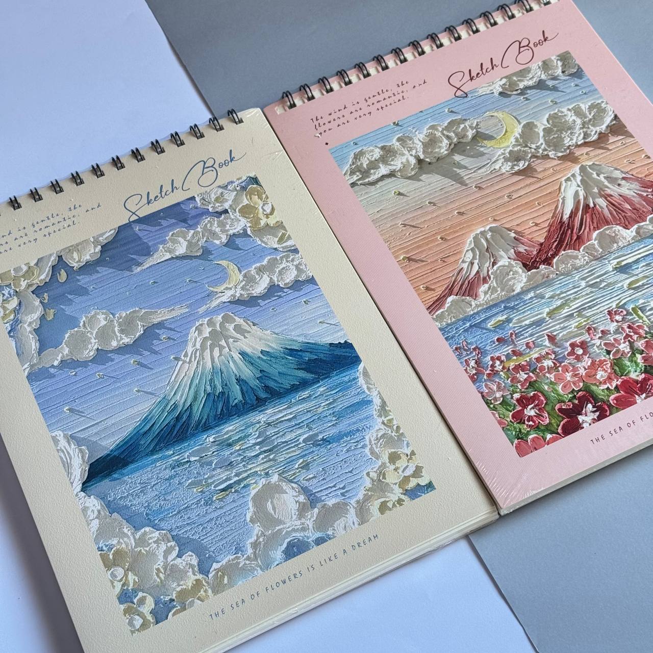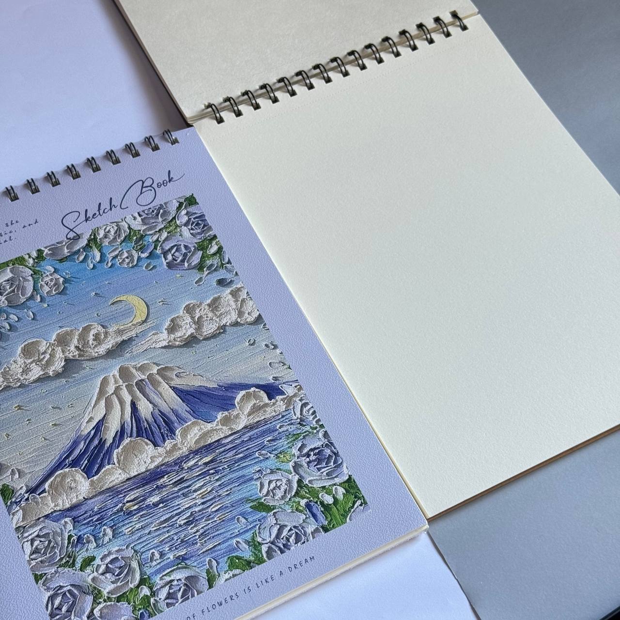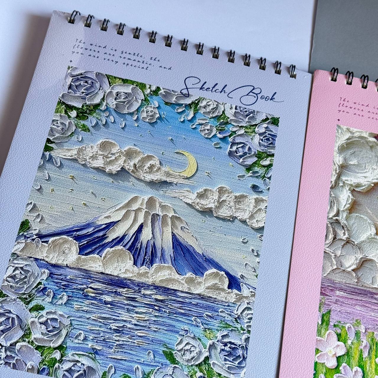 Diseñada para artistas y amantes del journaling visual, esta libreta incluye páginas blancas ideales para bocetos, pintura ligera y dibujo. Portadas vintage con paisajes.