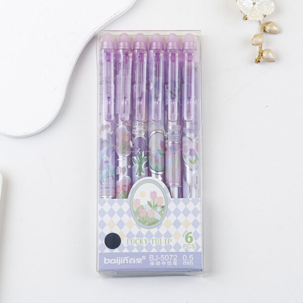 ¡Escribe con elegancia y corrige sin esfuerzo con este set de lápices de tinta gel borrable con diseño de tulipán! Perfectos para la escuela, oficina o tu colección de papelería kawaii.