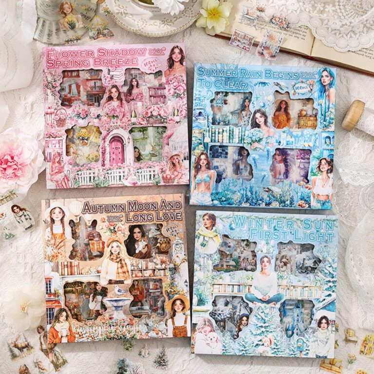 Caja de 4 Washi Tape Stickers Vintage Dale un toque retro y creativo a tus…