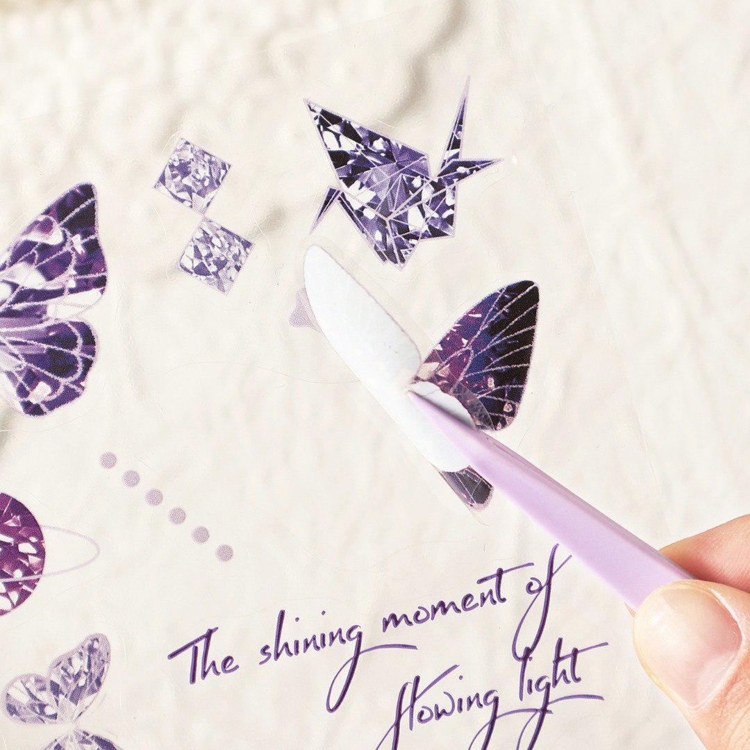 Con un tamaño de 10 × 15 cm, cada hoja es ideal para decorar planners, agendas, cuadernos, diarios, scrapbooking, cartas, álbumes y proyectos creativos. Incluye 4 modelos surtidos, con diferentes diseños de mariposas diamantadas que permiten combinar estilos y crear composiciones únicas.