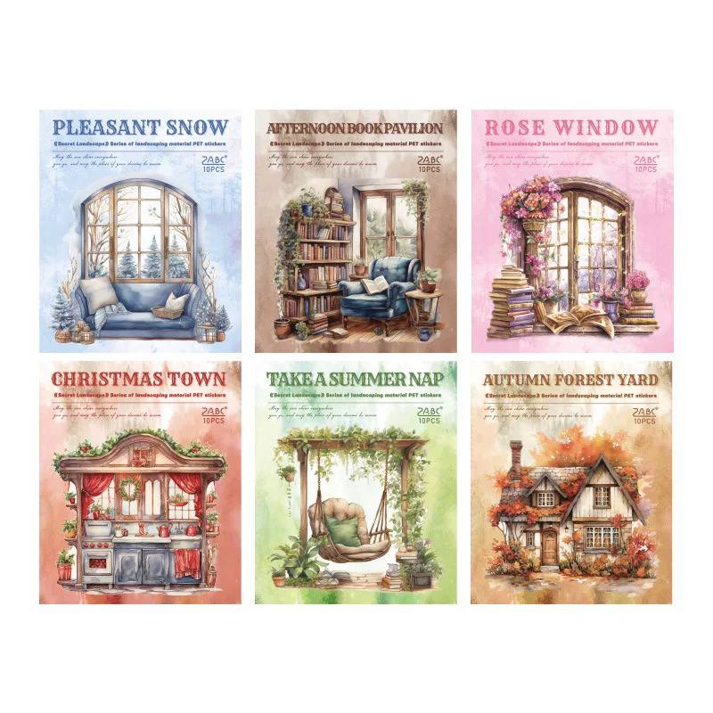Dale profundidad y encanto a tus creaciones con los Stickers Ventana Decorada Vintage, un set de pegatinas con diseños que simulan ventanas clásicas, paisajes y escenas decorativas de estilo retro. Ideales para crear efectos visuales únicos en journaling, scrapbooking y planners, como si cada página tuviera una pequeña ventana a otro mundo.