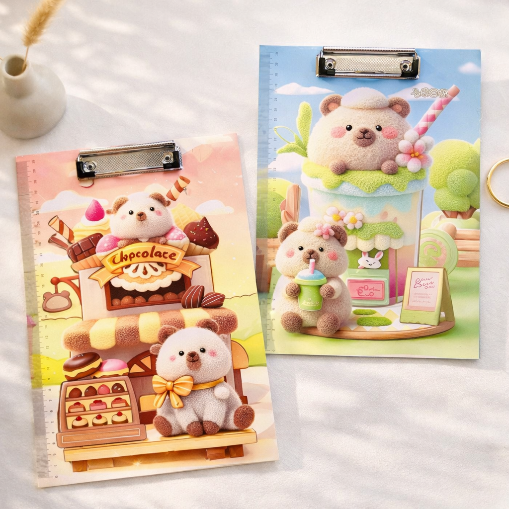 Un tablero adorable para sujetar documentos, ideal para estudiantes o amantes de la papelería cute.